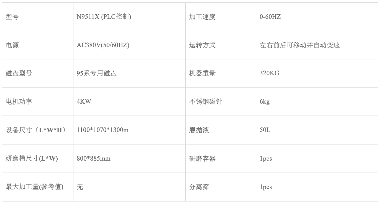 此机型由可编程控制器和磁力抛光系统构成,通过各种产品的参数来自动执行。由HMI作为上
